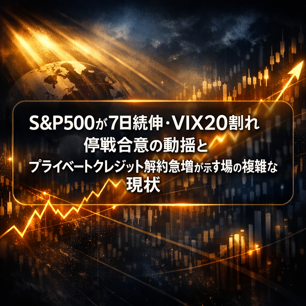 S&P500が7日続伸・VIX20割れ|停戦合意の動揺とプライベートクレジット解約急増が示す市場の複雑な現状
